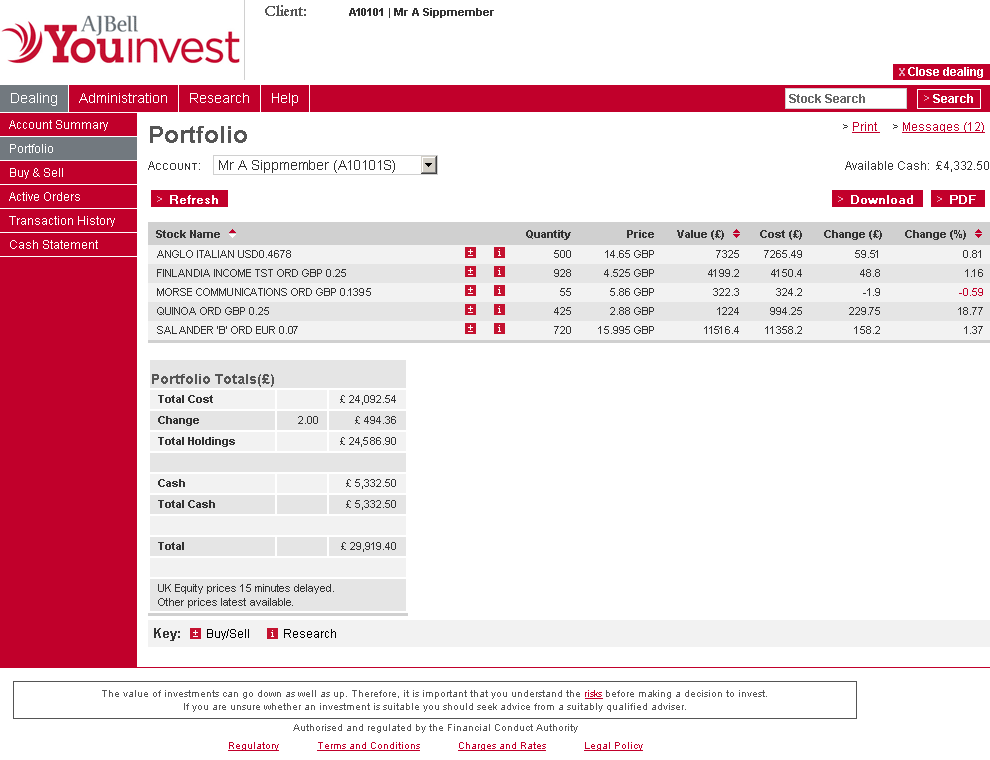 You can invest up to your total available cash which includes actual cash held plus unsettled sales less unsettled purchases and money earmarked for fund purchases and limit orders.