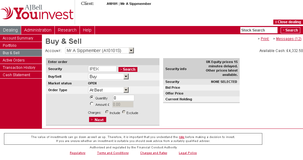 Enter the name of the stock you are looking for and select “Search”. Alternatively, you can enter the EPIC, Sedol or ISIN code and press the tab key.