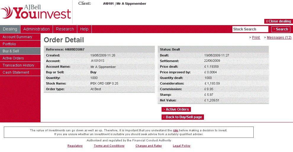 Your order will be confirmed immediately when you have dealt “At best” in an equity.