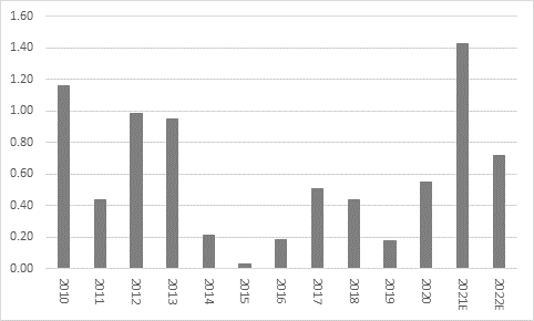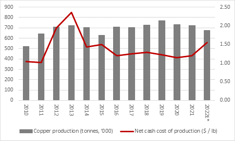Source: Company accounts. *2022E output based on mid-point of management guidance given alongside 2021 results.