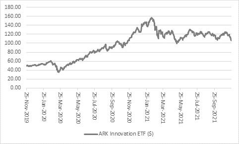 “The difference may therefore lie in the stocks involved, especially as ARK Innovations ETF is actively-managed and a few of its selected stocks are trading way, way below their highs after some terrible pastings. Zillow, Teladoc and one-time pandemic darling Zoom have all halved in the past year and Roku has lost 50% of its value since July.