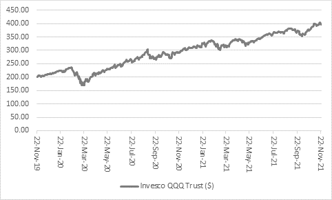 “This seems all the more surprising in the context of how the Invesco QQQ Trust which is trading at around the $400 mark for the first time in its history. This fund seeks to track and deliver the performance of the NASDAQ 100 index, which comprises the largest 100 non-financial firms in the NASDAQ Composite equity benchmark.