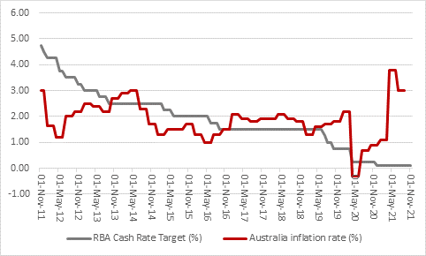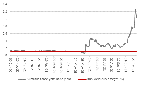 “In some ways the Aussies had no choice other than to scrap their policy of yield-curve control, whereby Governor Philip Lowe and the Reserve Bank of Australia (RBA) sought to hold the yield on Canberra’s three-year Government bond at 0.1%. Faced with a headline inflation rate of 3%, holders of Australian Government debt had already begun to rebel.