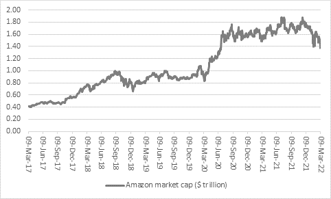 “At first glance Amazon passes the first of Buffett’s tests easily, because at the end of 2021 it had $42 billion in cash on its balance sheet, with another $42 billion in liquid securities on top of that trove.