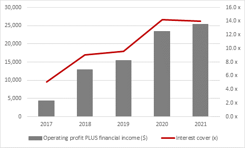 “Ultimately, however, even that figure only represents a gearing ratio of 23%, while annual operating profit of $24.9 billion and interest income of $448 million covered the $1.8 billion in annual financial expense some 14 times over. That means Amazon’s finances do look robust, although 2021’s slide in operating margins and profits late in the year needs to be watched, as any unexpected, sustained decline could mean interest cover starts to erode.