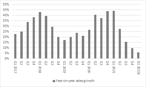 Source: Company accounts, mid-point of management guidance for Q1 2022E
