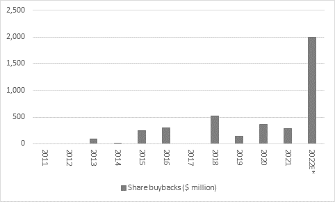 Source: Company accounts. Financial year to July. *Assumes whole $2 billion buyback carried out in fiscal 2022