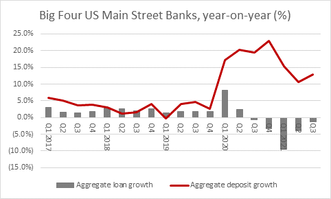 “Loan growth remains anaemic and is still being outstripped by deposit growth. This may signal caution on behalf of consumers and corporations, in light of the latest viral variant, but also the benefit of Government support schemes which are now ending or have ended. An acceleration in loan growth would speak of increased confidence in the US economy and give support to earnings forecasts.