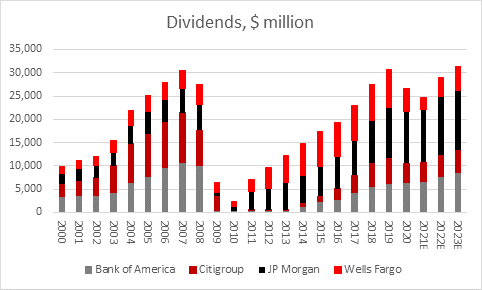 “Dividends will not reach the $30 billion to $31 billion aggregate peaks of 2007 and 2019 but are still expected to reach a very healthy $24 billion in 2021, ahead of further increases.