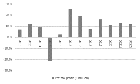 “Management’s estimate that adjusted pre-tax profits will come in 55% to 65% below consensus implies an adjusted pre-tax profit for the year to June 2022 of around £12 million compared to forecasts of £19.7 million and analysts’ anticipated out-turn for the year to June 2021 of £12.7 million.”