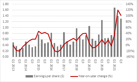 “A forward price/earnings ratio of nearly 27 times prices in a lot of future growth – and analysts have pencilled in just 5% sales growth and 2% earnings per share growth for the year to September 2022.