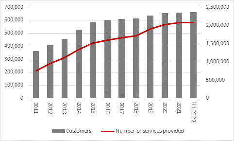 Source: Company accounts. Accounting for fixed-line telephony, line rental and broadband customers restated 2019.