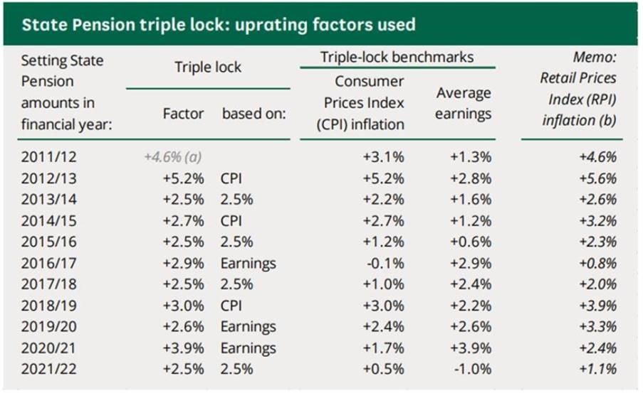 o Decision to suspend the earnings element of the triple-lock for 2022/23 will therefore ‘cost’ retirees in receipt of the full flat-rate state pension £9.35 per week