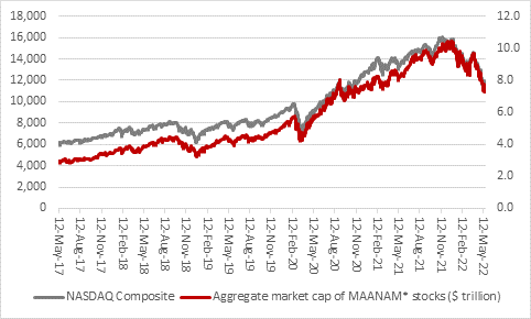 More speculative names with big market caps that deliver only losses (or profits that are tiny compared to their market caps) are collapsing in value, as can be seen in the bear market that already characterises NASDAQ and the sinking price of Cathie Wood’s ARK Innovation ETF.
