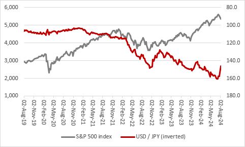 The second is again the yen, given its pivotal role in global market liquidity. If the Bank of Japan backtracks on its promise of more rate hikes that might help, although whether that stokes global inflation expectations is another challenge, and rapid cuts from the Fed and other central banks might stoke money supply and liquidity in the West, but they might fuel inflation fears too – which may be why gold is holding firm.