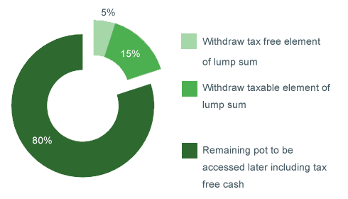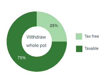 A single payment where 25% is tax free, and the remaining 75% is taxable. This option lets you take a series of smaller amounts, while leaving the rest invested to access more of in the future. Or you can even withdraw the whole pot.